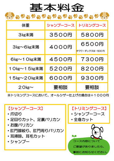 トリミングのご予約時刻より15分以上遅れてご来院された際は、キャンセル又はご希望の施術をお断りする場合がございます。